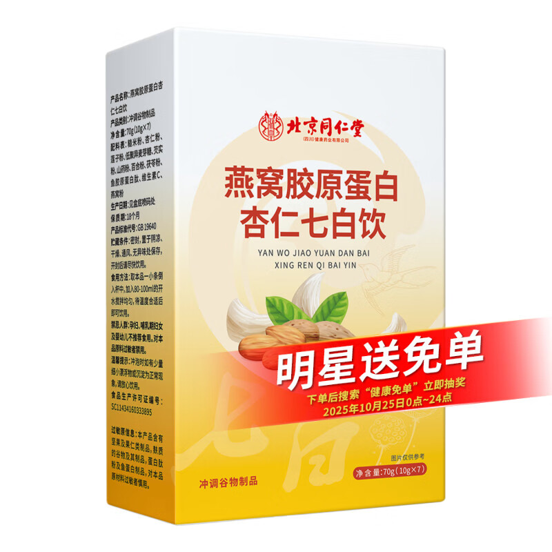 包邮 同仁堂北同四川-燕窝胶原蛋白杏仁七白饮70g